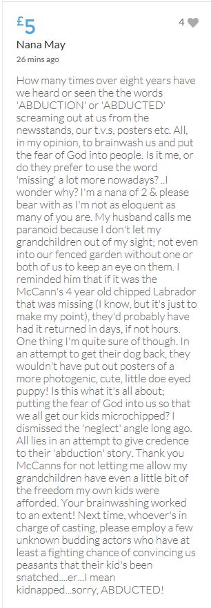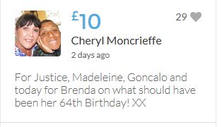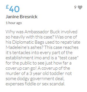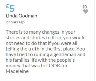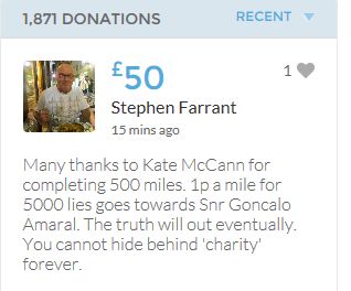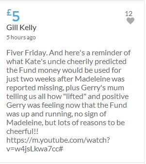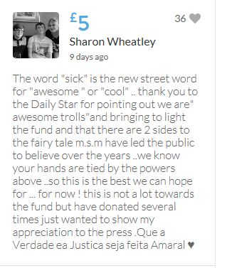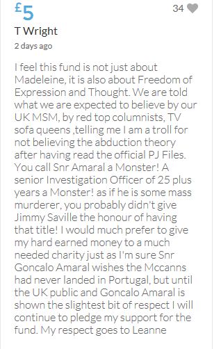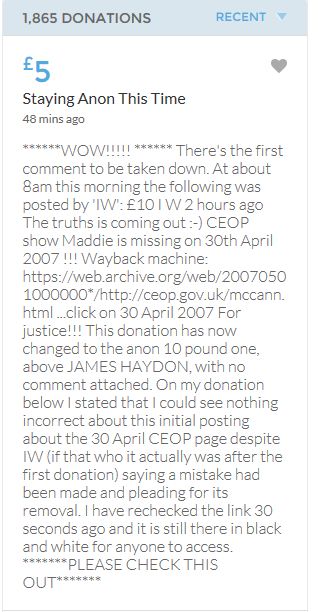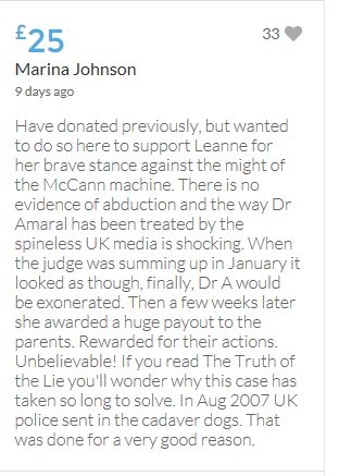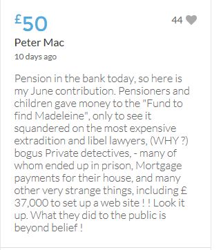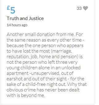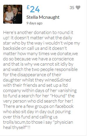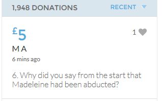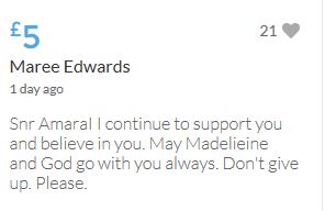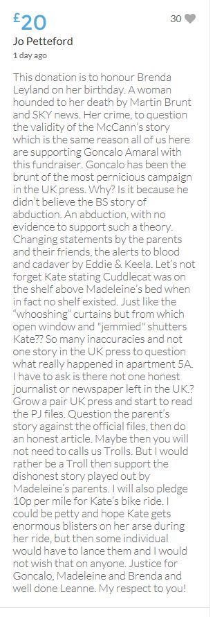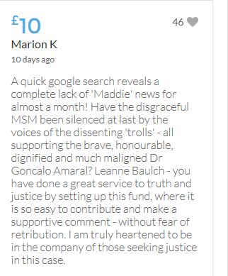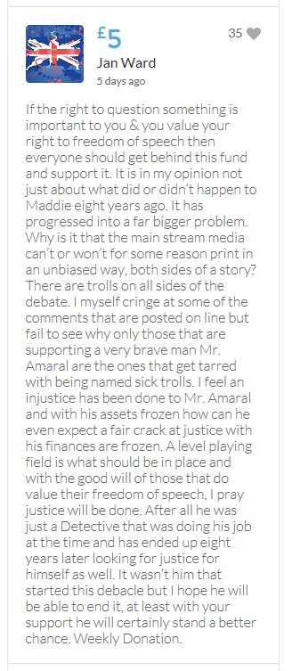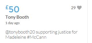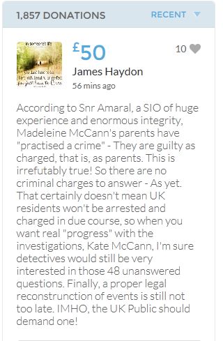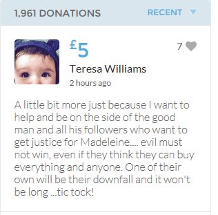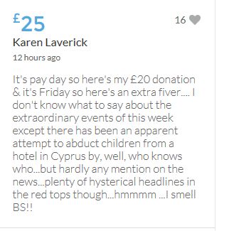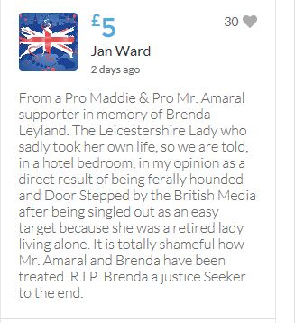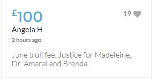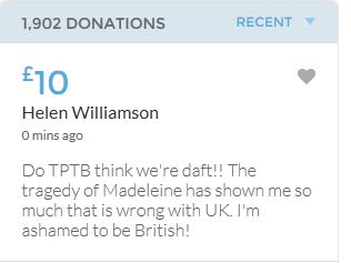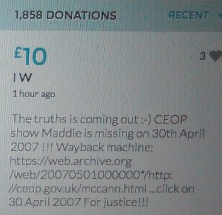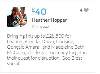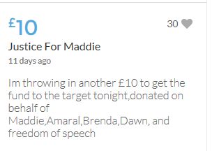 Im throwing in another £10 to get the fund to the target tonight,donated on behalf of Maddie,Amaral,Brenda,Dawn, and freedom of speech