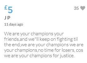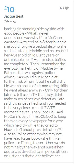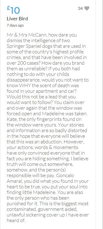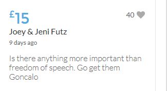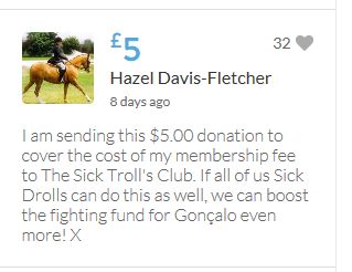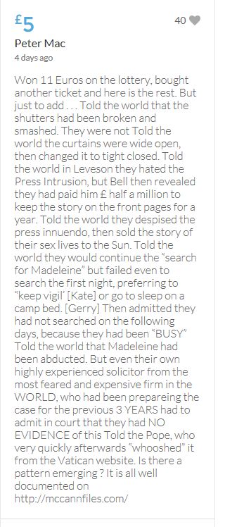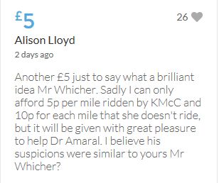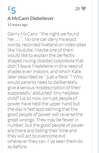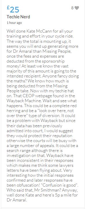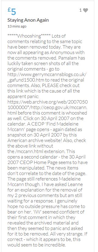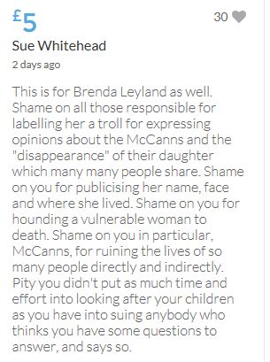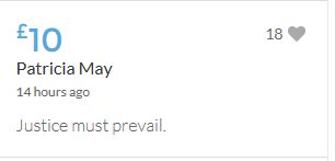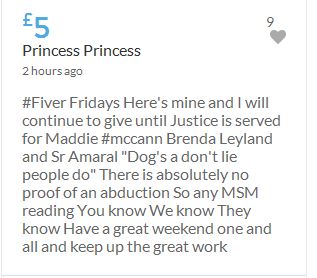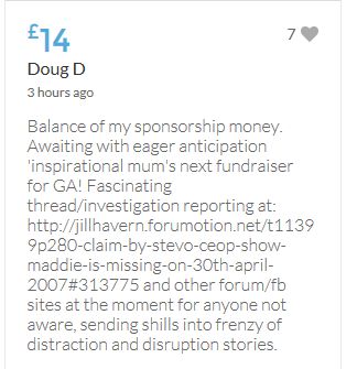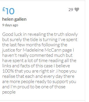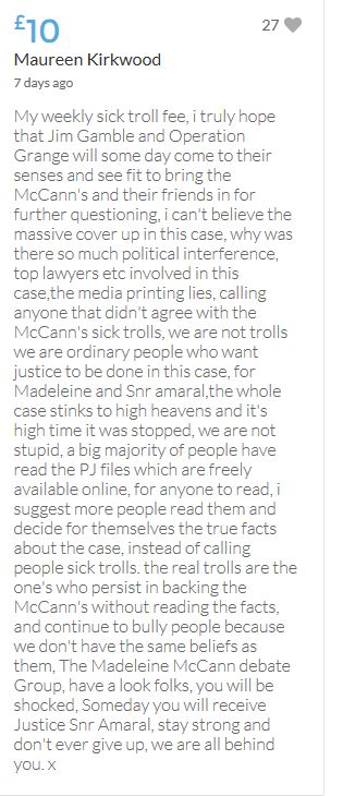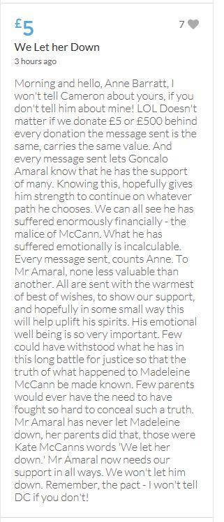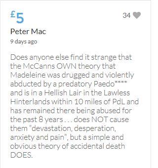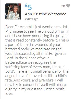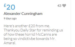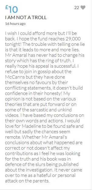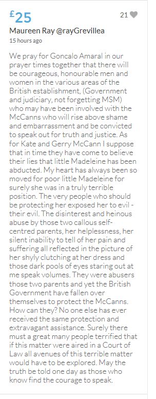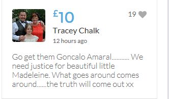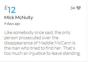 Im throwing in another £10 to get the fund to the target tonight,donated on behalf of Maddie,Amaral,Brenda,Dawn, and freedom of speech