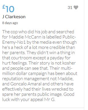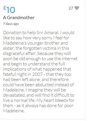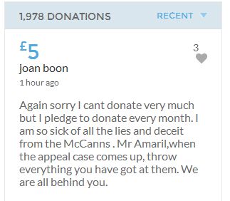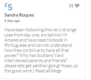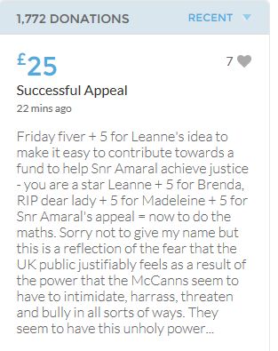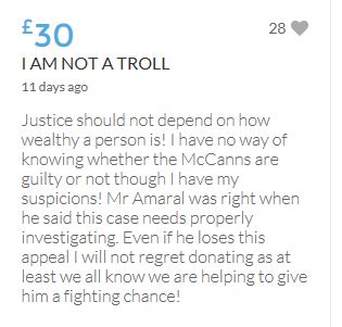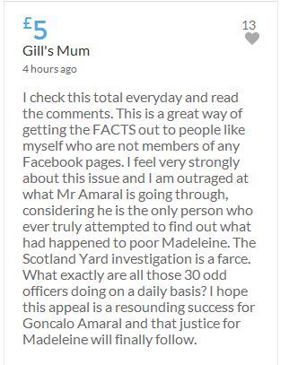 Justice should not depend on how wealthy a person is! I have no way of knowing whether the McCanns are guilty or not though I have my suspicions! Mr Amaral was right when he said this case needs properly investigating. Even if he loses this appeal I will not regret donating as at least we all know we are helping to give him a fighting chance!