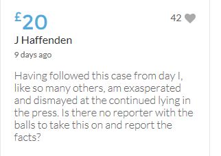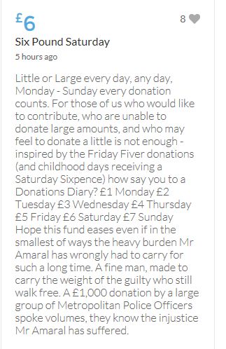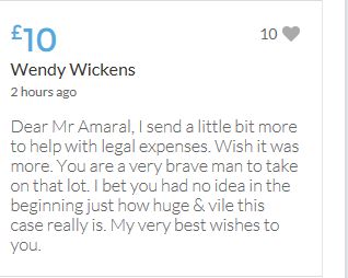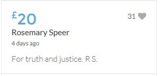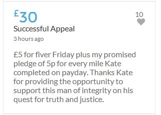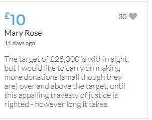 The target of £25,000 is within sight, but I would like to carry on making more donations (small though they are) over and above the target, until this appalling travesty of justice is righted - however long it takes.