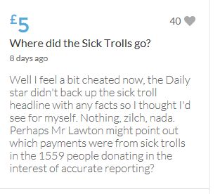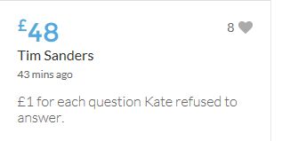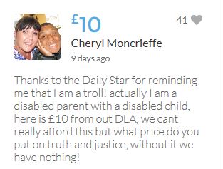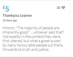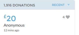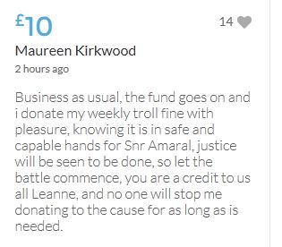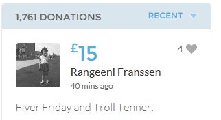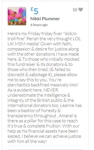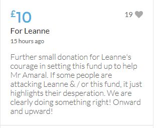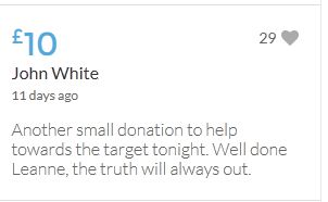 Another small donation to help towards the target tonight. Well done Leanne, the truth will always out.
