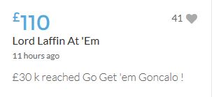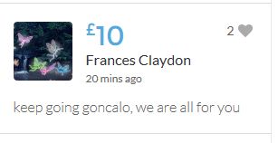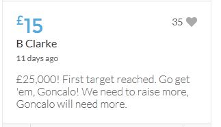 £25,000! First target reached. Go get 'em, Goncalo! We need to raise more, Goncalo will need more.