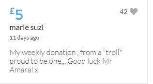My weekly donation , from a "troll" proud to be one,,, Good luck Mr Amaral x