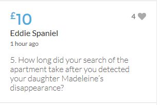 Dear Kate and Gerry, why did you change your story about what happened that night so many times ? Why did you use donations from generous members of the public, which you said would be used for searching, to hire PR firms and lawyers to fight anyone who questioned you ? Why did you refuse to answer 48 police questions that would help to find your daughter ? Why did you refuse a lie detector test unless you chose the questions ? Why did you plan for the future when Madeleine could be found at any time ? Why do you and your friends say you have a ‘pact of silence’ ? You know what happened to your daughter, don’t you Kate and Gerry ? You are hiding a big secret. Our sniffer dogs with 100% success rate found death in your apartment. Good luck Goncalo Amaral in your quest for the truth. Please stay strong a bit longer.
