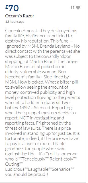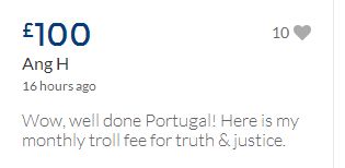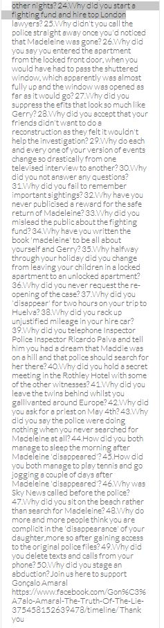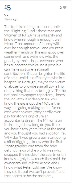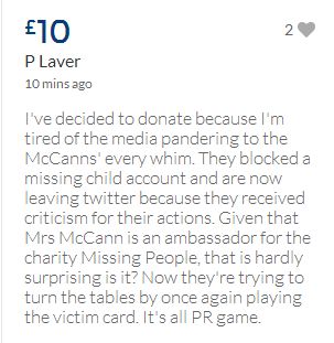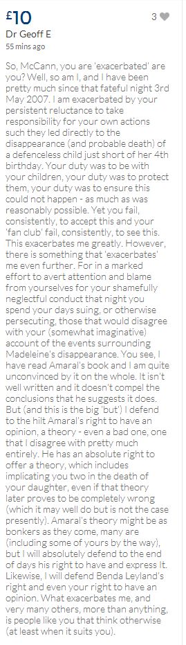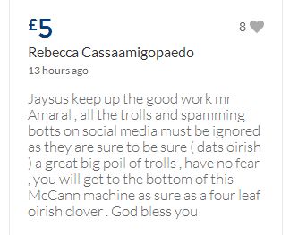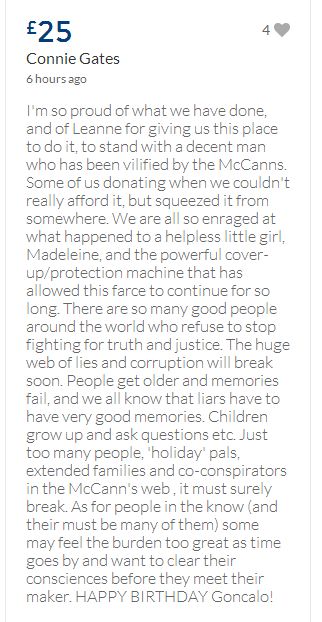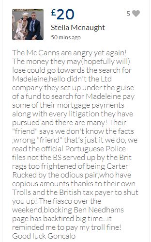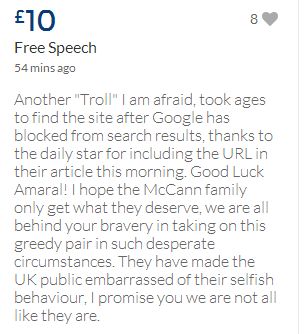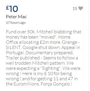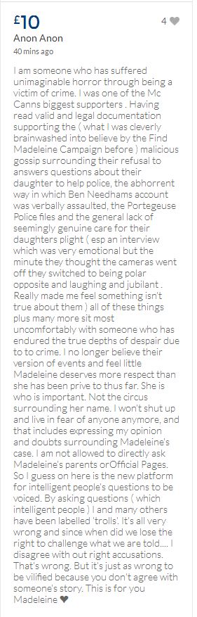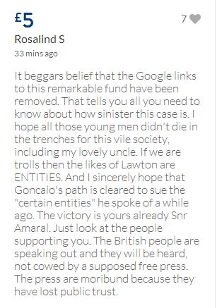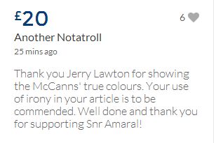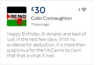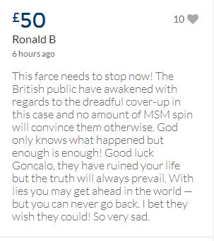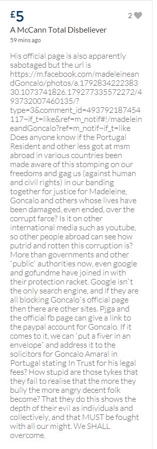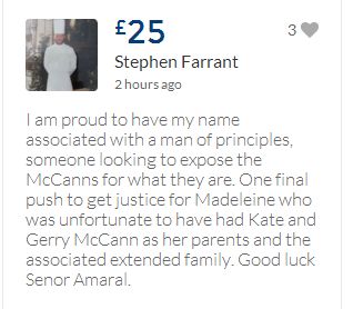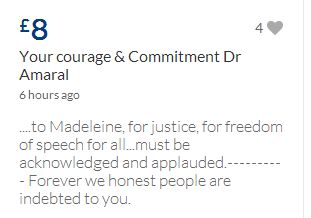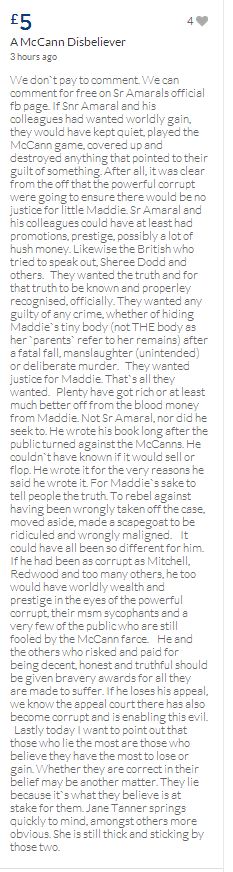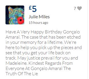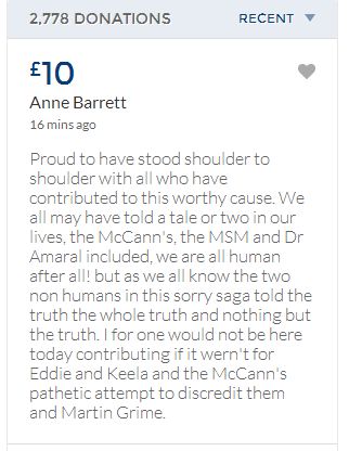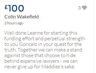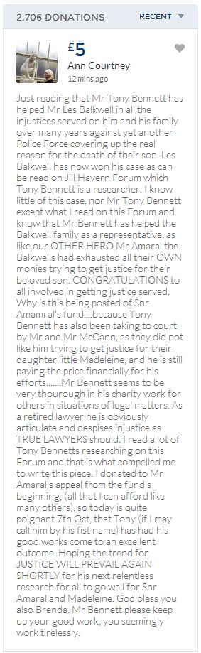 From a group of company workers and of the legal system who are stupefied with what has happened. Portugal and Great Britain are old allies, but the McCanns and the British tabloids have tried to separate us. We all see perfectly what they are trying to do, freezing Dr. Amaral's assets in order to keep him from defending himself, while they use the millions that were donated by the public to sue him. This is not justice. This is wrong. The McCanns lost 5 of their 7 claims, but the British press hasn't reported it, neither did they report the harsh words used by the judge in relation to their presumed "proof". They must pay 60% of the costs, but the British press has not reported it. This small donation is to ensure that this venomous act of hate will not succeed. We believe that one day the truth will be told, although it will be improbable that it will be the parents who will do it. |