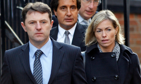 Gerry and Kate McCann arrive to testify at the Leveson inquiry. Photograph: Lefteris Pitarakis/AP