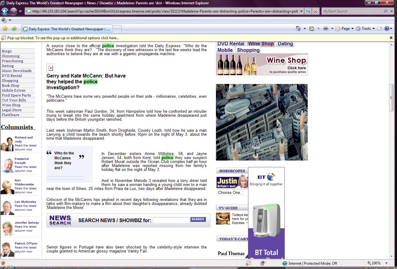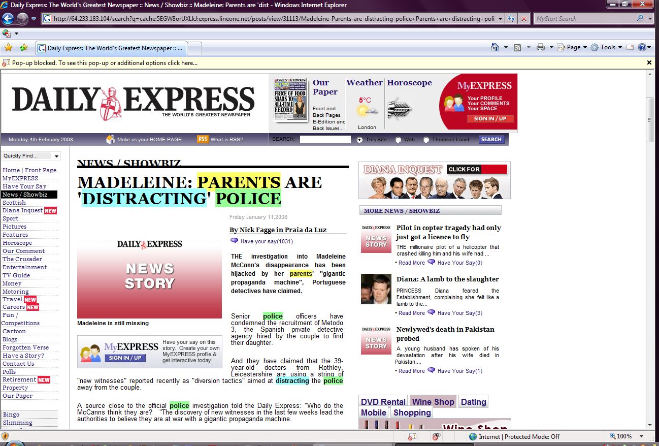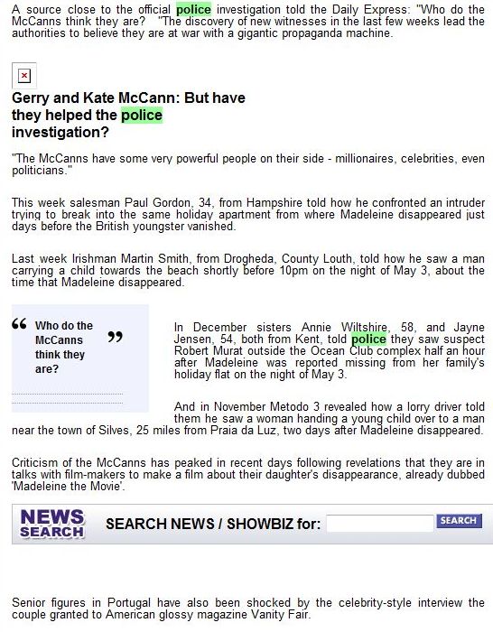 Daily Express: "Who do the McCanns think they are? "The discovery of