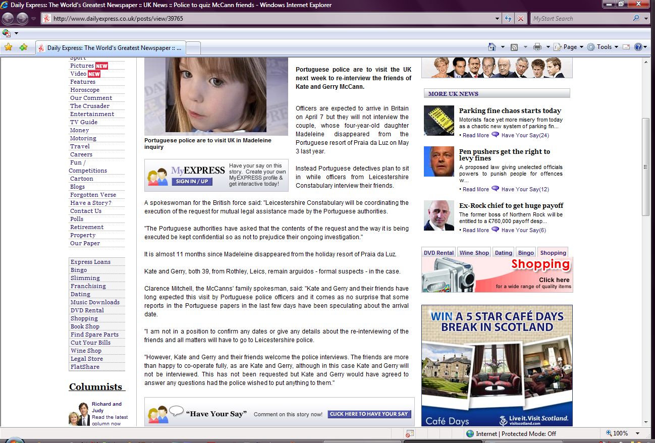 "However, Kate and Gerry and their friends welcome the police interviews. The