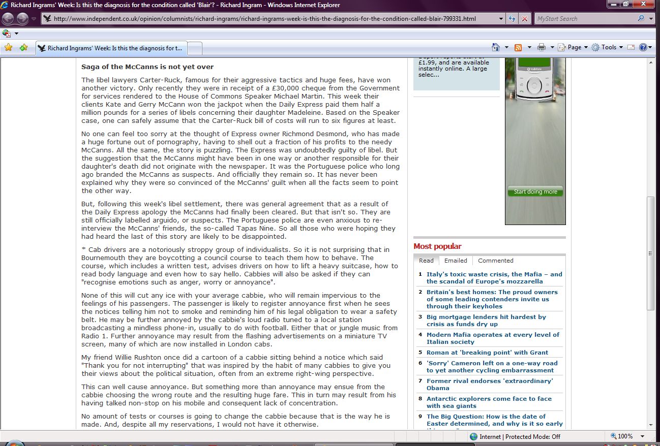 The libel lawyers Carter-Ruck, famous for their aggressive tactics and huge fees, have won another victory. Only recently they were in receipt of a ?30,000 cheque from the Government for services rendered to the House of Commons Speaker Michael Martin. This week their clients Kate and Gerry McCann won the jackpot when the Daily Express paid them half a million pounds for a series of libels concerning their daughter Madeleine. Based on the Speaker case, one can safely assume that the Carter-Ruck bill of costs will run to six figures at least.