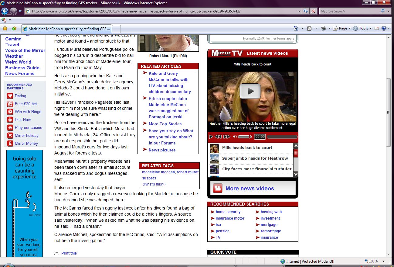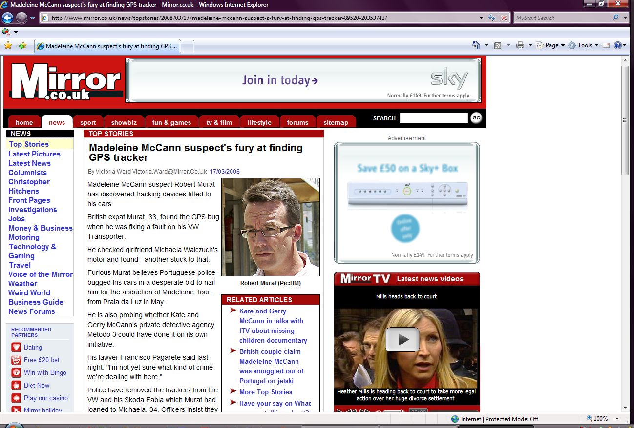Furious Murat believes Portuguese police bugged his cars in a desperate bid to nail him for the abduction of Madeleine, four, from Praia da Luz in May.