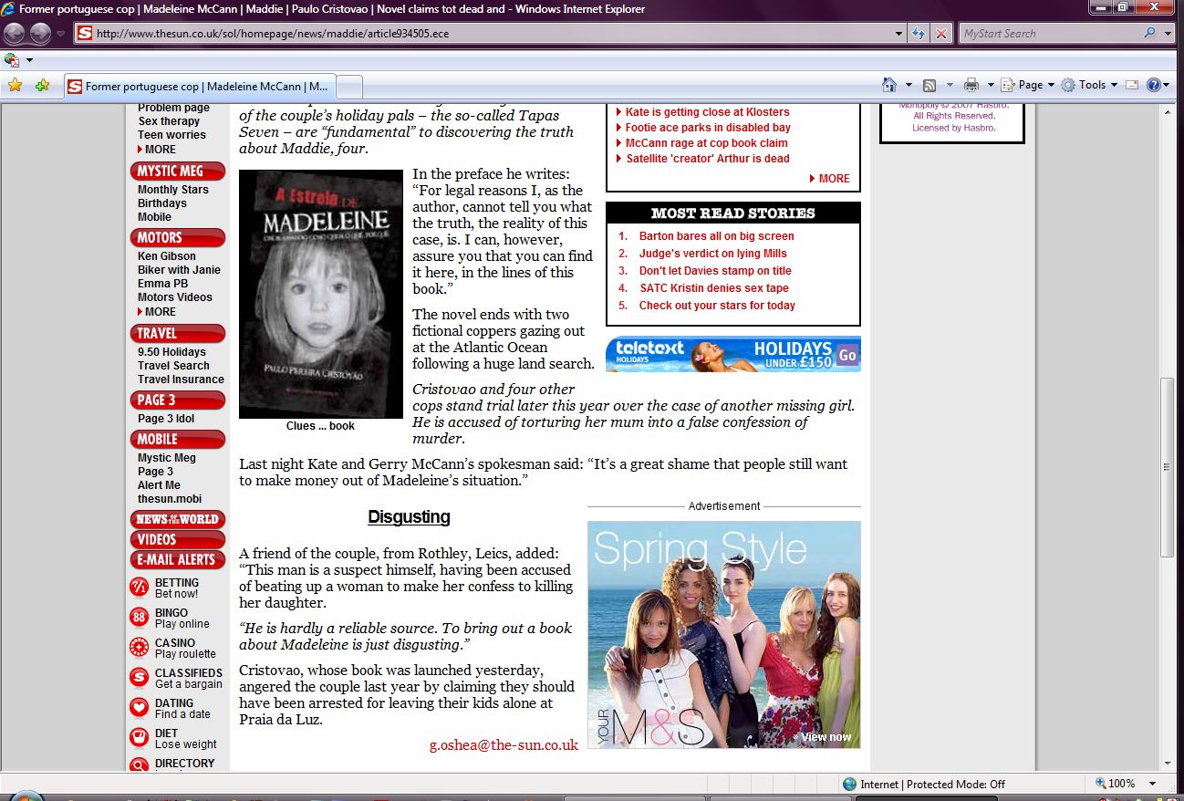 to the McCanns for articles suggesting they were