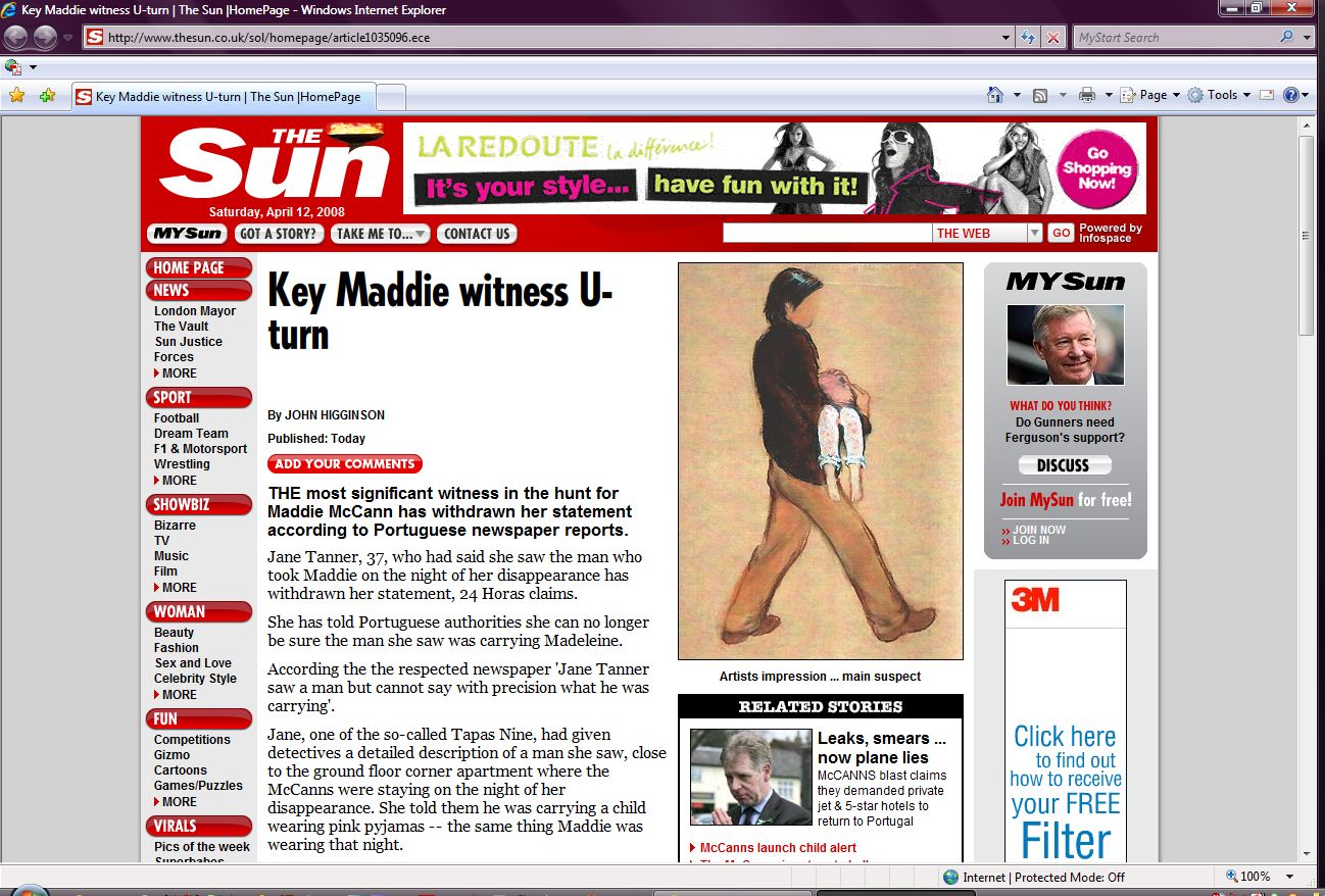 newspaper 'Jane Tanner saw a man but cannot say with precision what he was