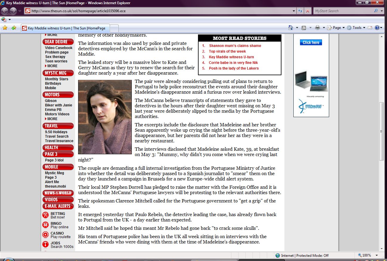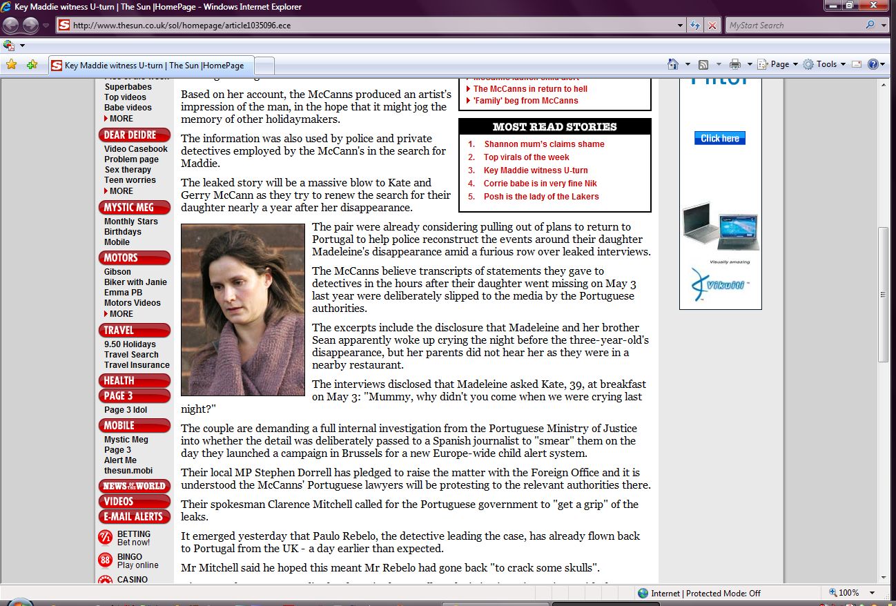 by police and private detectives employed by the McCann's in the search for