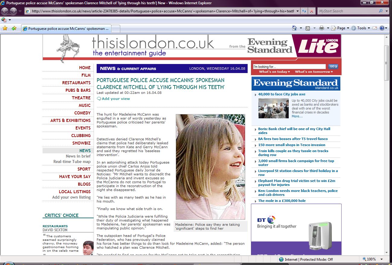 Madeleine disappeaered. Tensions between the police and the McCann family