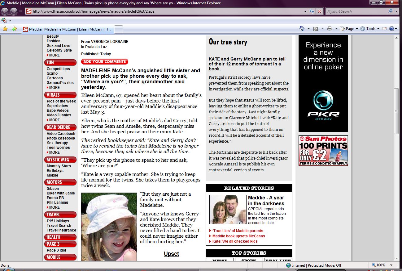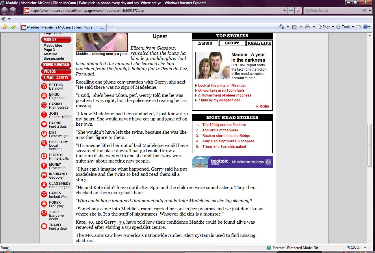 conversation with Gerry, she said: “He said there was no sign of Madeleine.