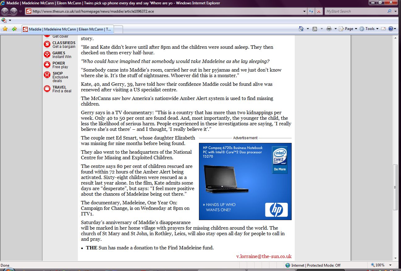 positive about the chances of Madeleine being out there.”