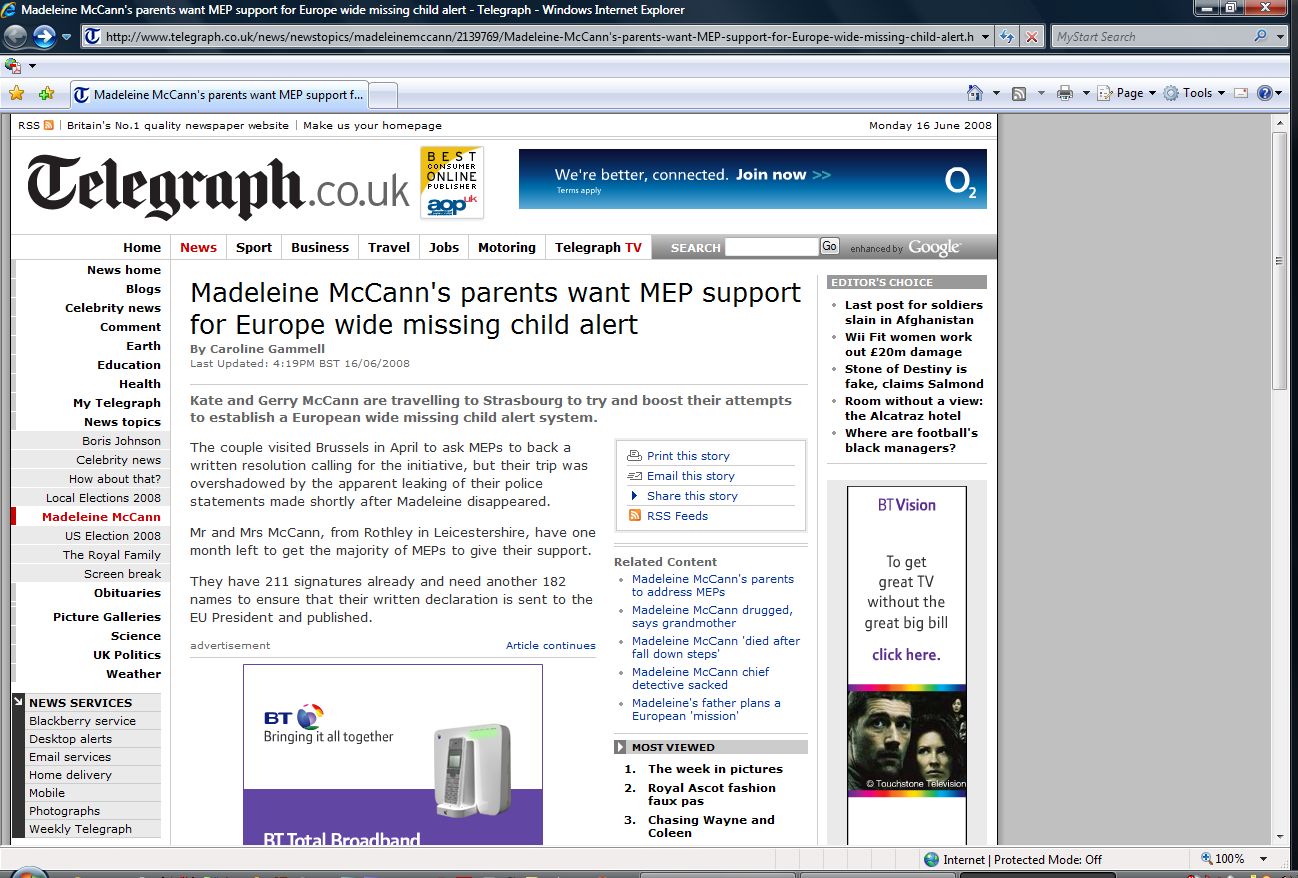 Original Source:  TELEGRAPH: MONDAY 16 JUNE 2008