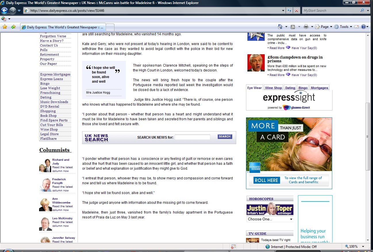 Judge Mrs Justice Hogg said: “There is, of course, one person who knows what has happened to Madeleine and where she may be found.