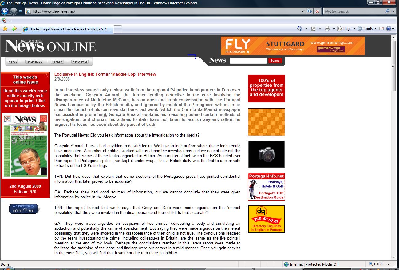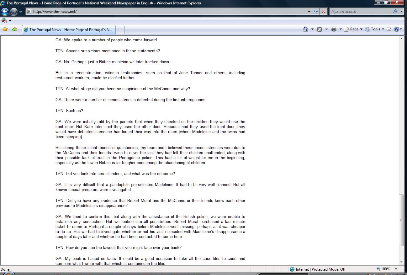 in Faro over the weekend, Goncalo Amaral, the former