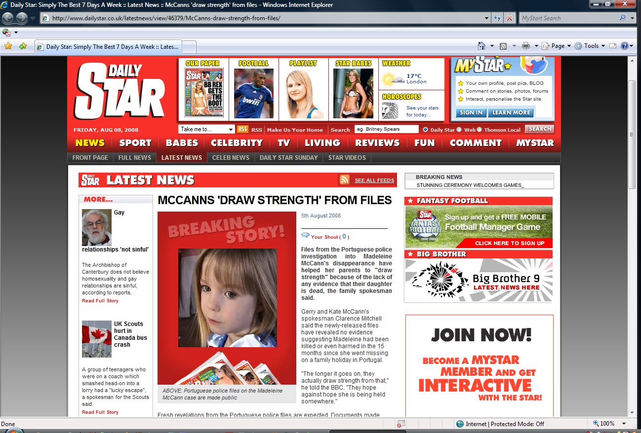 revealed no evidence suggesting Madeleine had been killed or even harmed