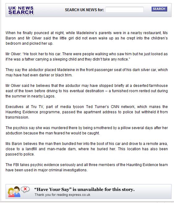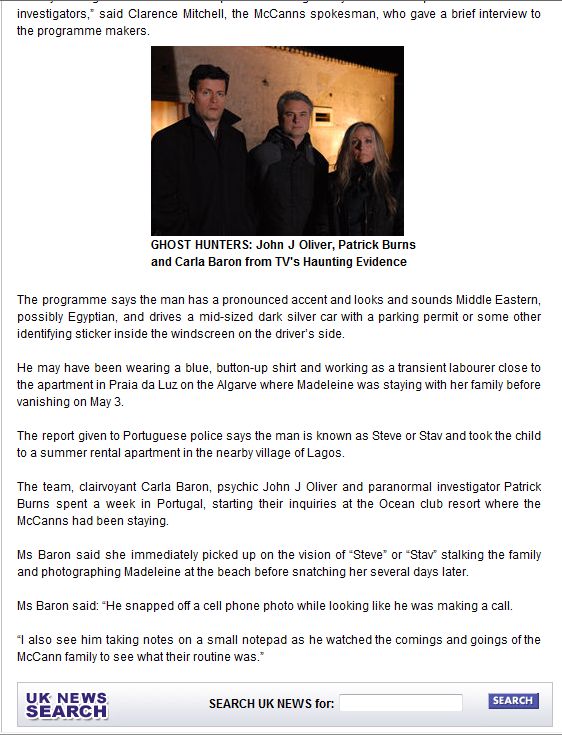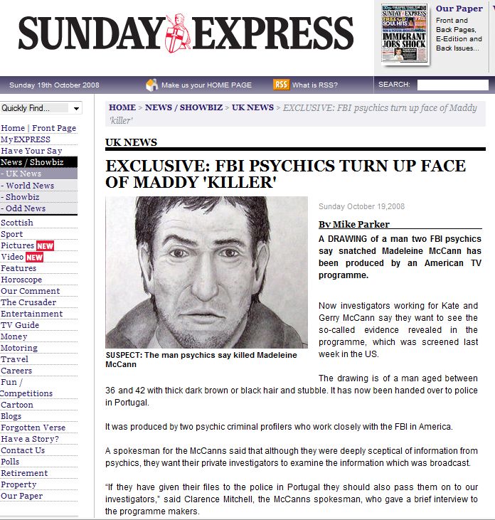 psychics say snatched Madeleine McCann has been produced by an