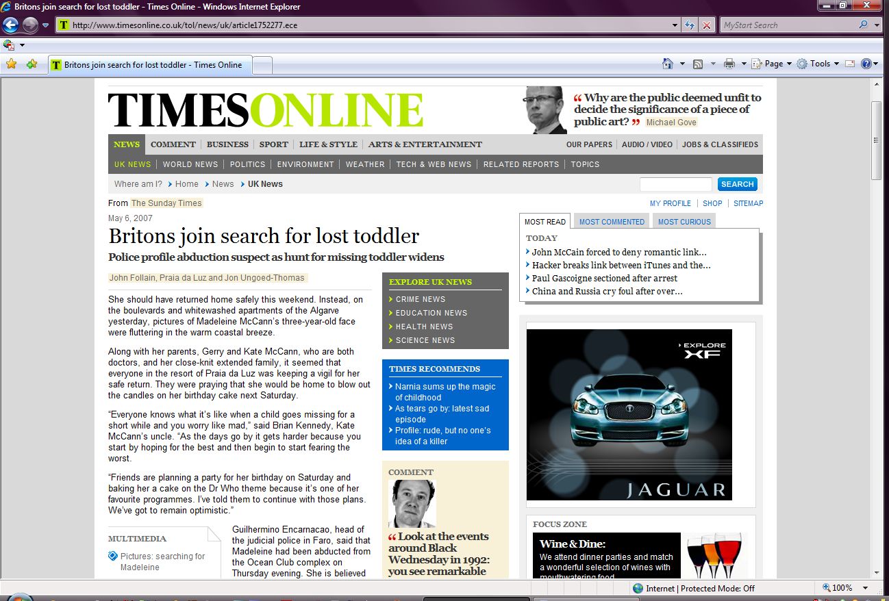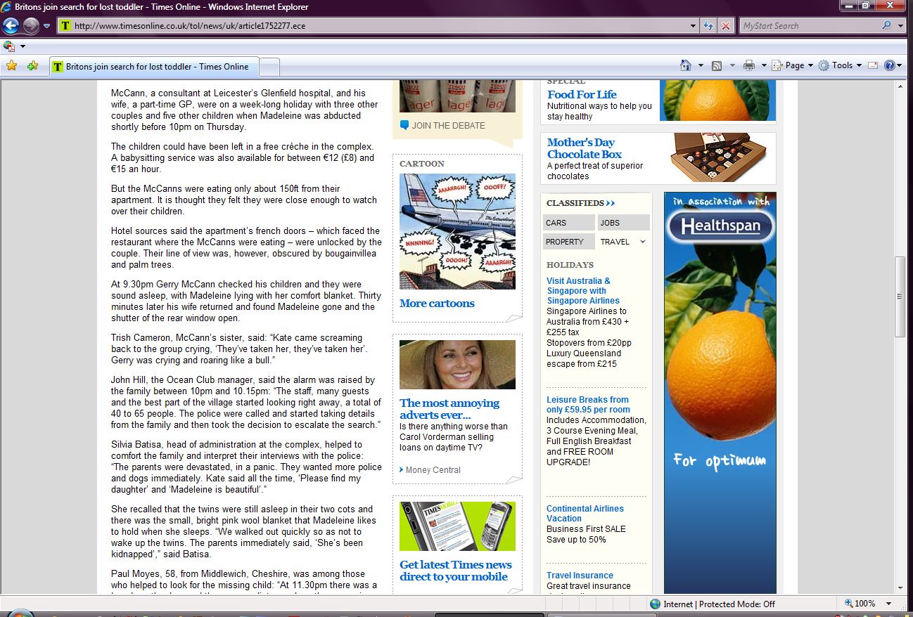 yesterday, pictures of Madeleine McCann's three-year-old face