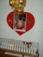 containing a picture of Madeleine fixed to the wall in front of the