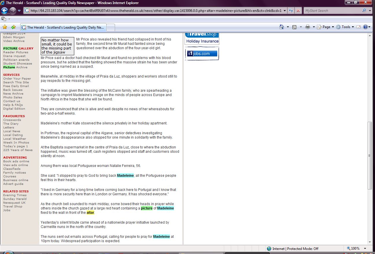 She said: "I stopped to pray to God to bring back Madeleine; all the