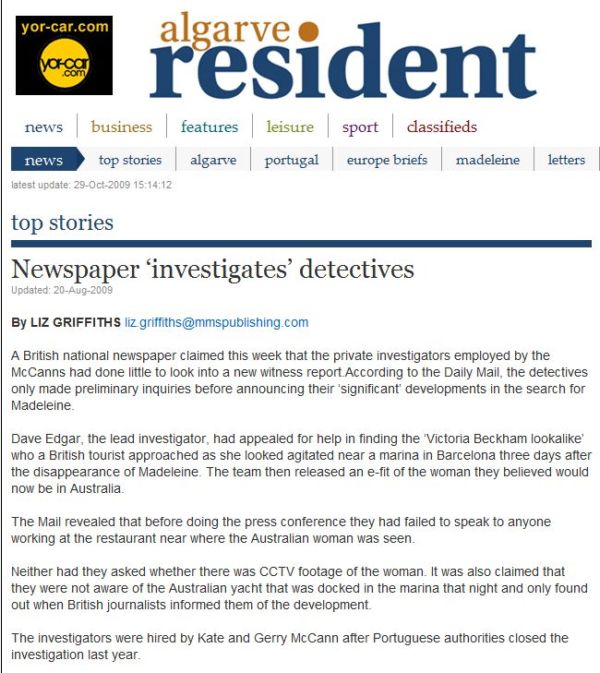 The investigators were hired by Kate and Gerry McCann after Portuguese