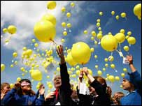 children have launched balloons to help publicise the plight of missing