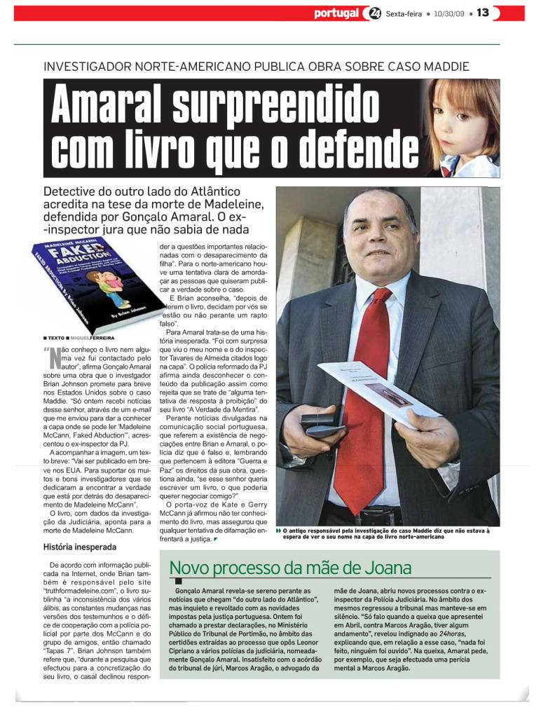 says Gonçalo Amaral about a book about the Maddie case that investigator