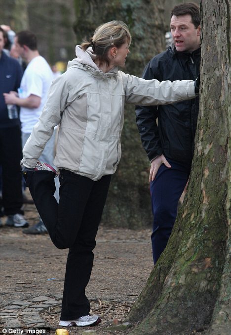 Limbering up: Kate McCann does some stretching as she chats
