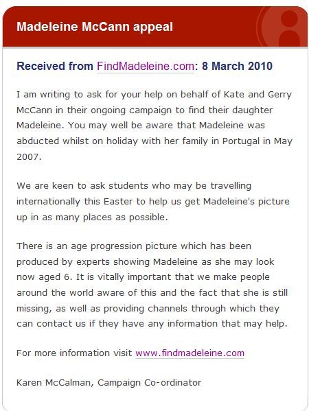 Madeleine. You may well be aware that Madeleine was abducted whilst on