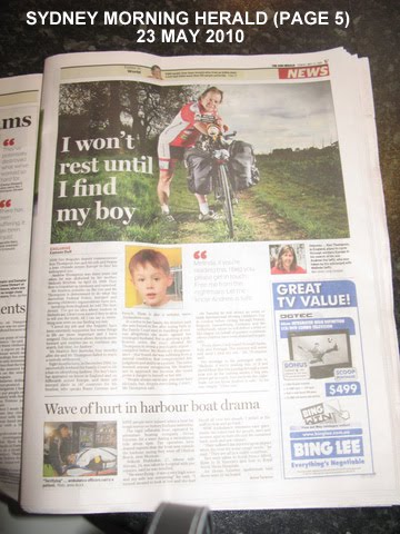 My London cycling skills have improved to the extent that the past four days have seen me cycling more than 200 kilometres in & around Central London (even the bus drivers & taxi drivers are sharing the bus lanes with me now!). I cycled to Buckingham Palace on Sunday where dozens of people from many different countries approached me to ask about Andrew & to take ?Missing Andrew? bumper stickers. The same thing happened at the other tourist icons I cycled to as well.