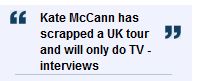 Kate McCann has scrapped a UK tour and will only do TV interviews in