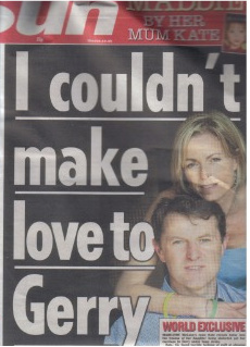 Tortured as I was by these nauseating images, it's probably not surprising that even the thought of sex repulsed me. I worried about Gerry and me. I worried that if I couldn't get our sex life back on track our whole relationship would break down. I know there is more to a relationship than sex, but it is still an important element. It was vital that we stayed together and stayed strong for our family. Gerry was incredibly understanding and supportive. He never made me feel guilty, he never pushed me and he never got sulky. In fact, sometimes he would apologise to me. Invariably, he would put a big, reassuring arm around me and tell me that he loved me and not to worry. I was determined not to be beaten by this, not simply to capitulate and accept it as just one of the unfortunate side-effects of this tragedy. Gerry and I talked about it a little, but mostly I analysed the problem privately in my head. I also discussed it with psychologist Alan Pike who assured me that, like my ability to relax or enjoy a meal, it would gradually return. Deep down, though, I knew there were only two solutions: bringing Madeleine back or conquering my mental block.