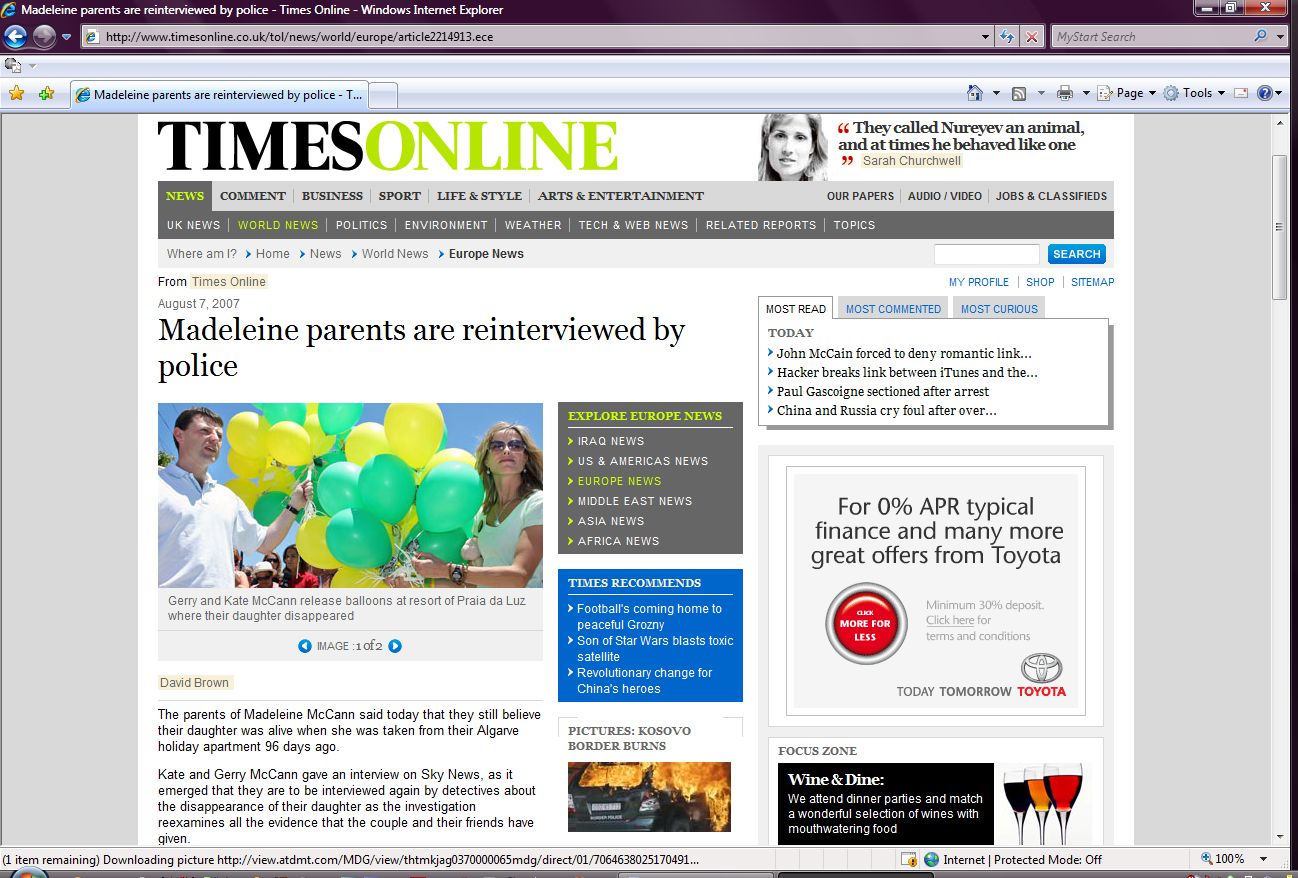 A Jeep used by the couple on their holiday in Praia da Luz was still being tested by forensic science experts and sniffer dogs today. Tests have also been carried out on a car belonging to Robert Murat, the only official suspect in the case, his mother, his girlfriend, her estranged husband and Serguei Malinka, a Russian web designer who had worked for Mr Murat.