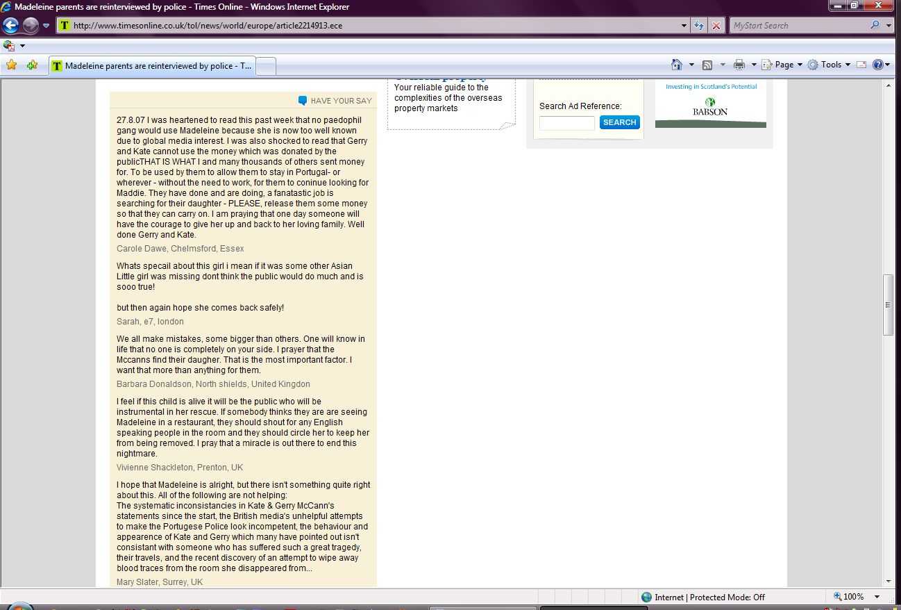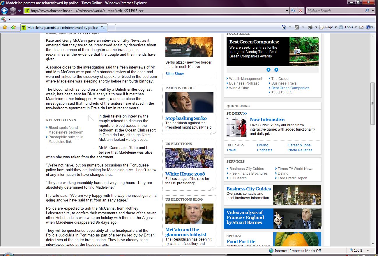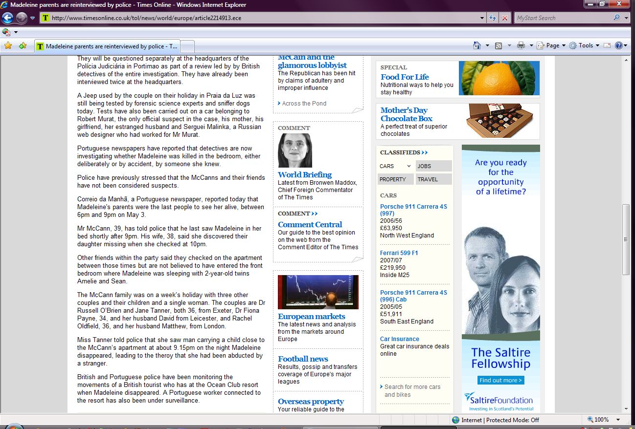 Correio da Manhã, a Portuguese newspaper, reported today that Madeleine's parents were the last people to see her alive, between 6pm and 9pm on May 3.