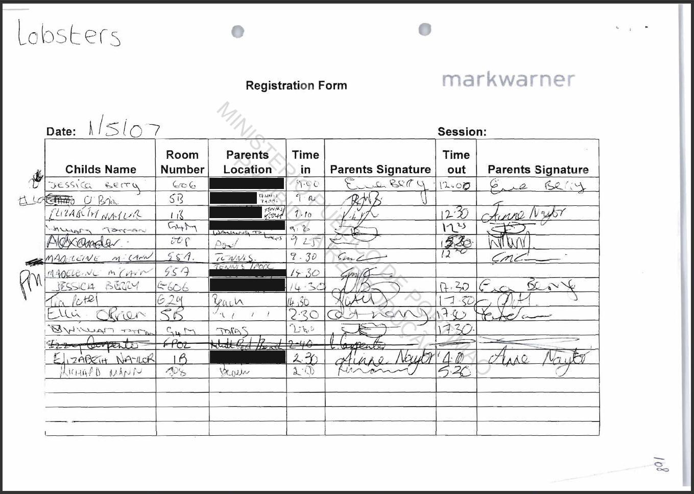 being signed out again at 4.00 p.m., Madeleine is not signed out at all.