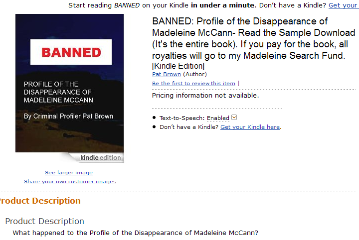 Amazon has pulled my book because the McCanns claim it is defamatory."