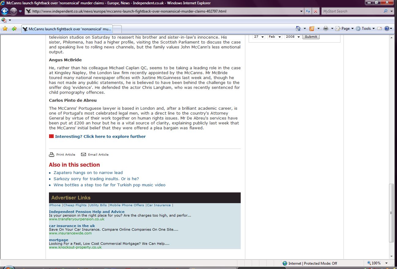 The McCanns' Portuguese lawyer is based in London and, after a brilliant academic career, is one of Portugal's most celebrated legal men, with a direct line to the country's Attorney General by virtue of their work together on human rights issues. Mr De Abreu's services have been put at £200 an hour but he is a vital source of clarity, explaining publicly last week that the McCanns' initial belief that they were offered a plea bargain was flawed.
