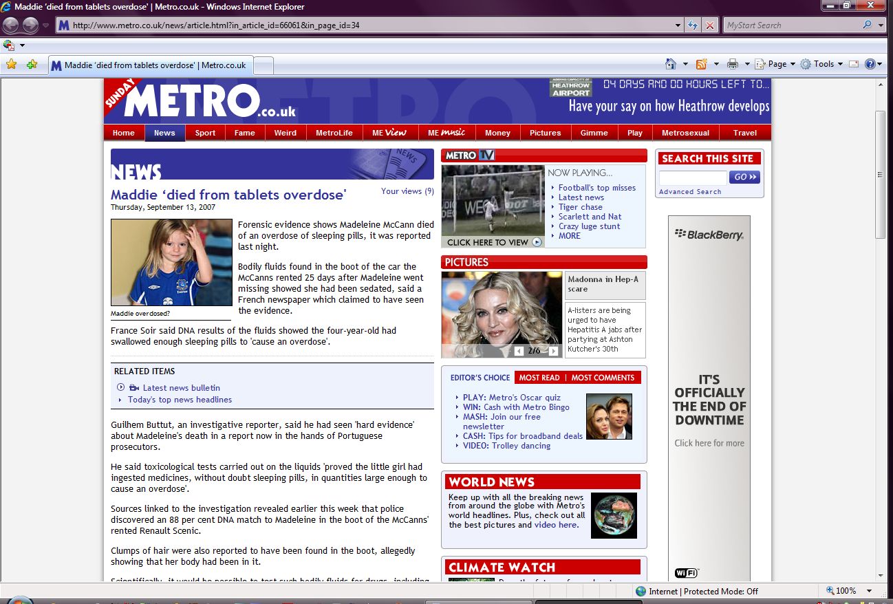 Madeleine's death in a report now in the