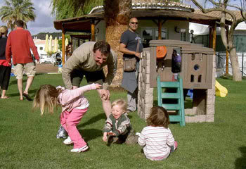AN innocent holiday snap of a family playing with their father has drawn a