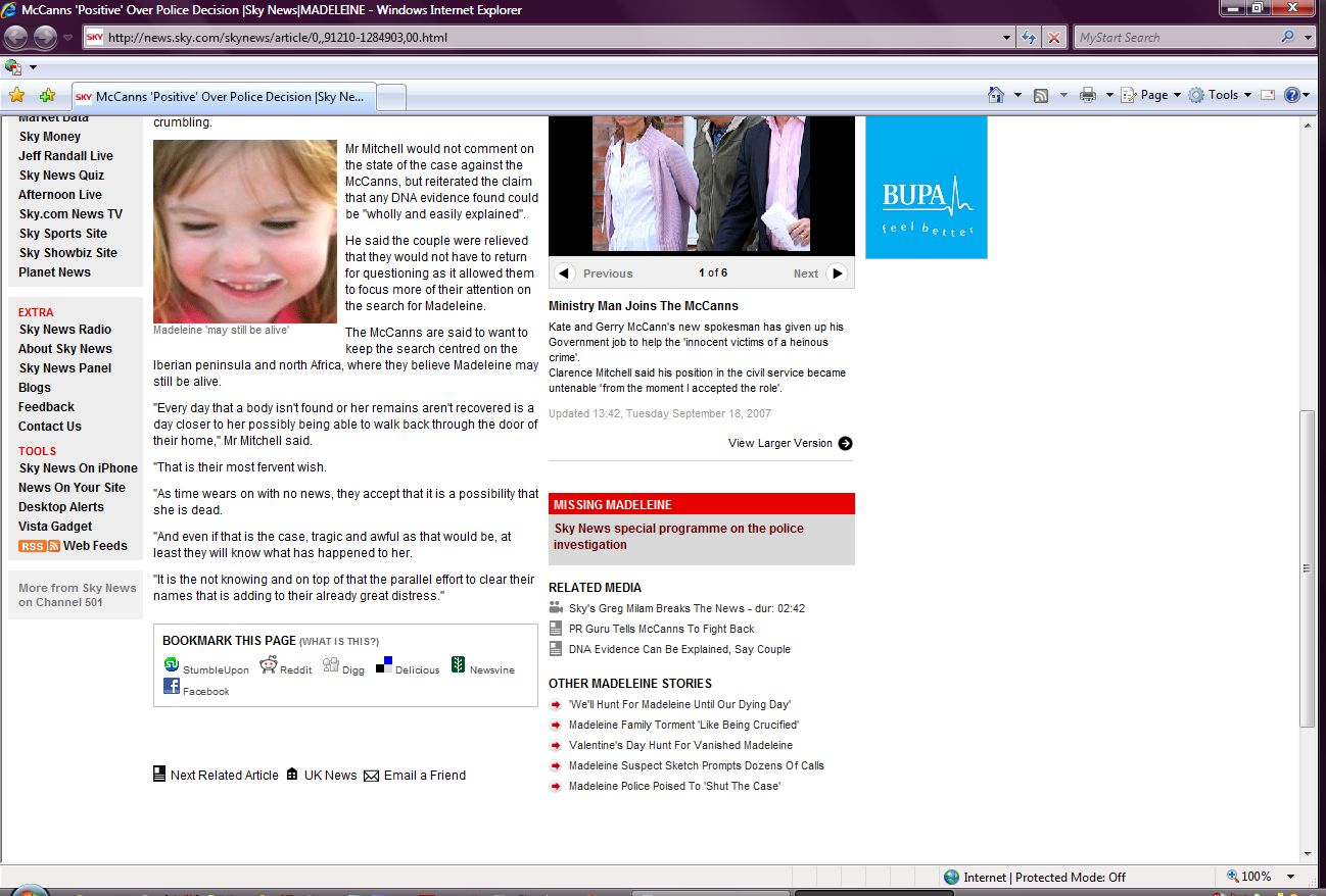 Mr Mitchell would not comment on the state of the case against the McCanns, but reiterated the claim that any DNA evidence found could be "wholly and easily explained".