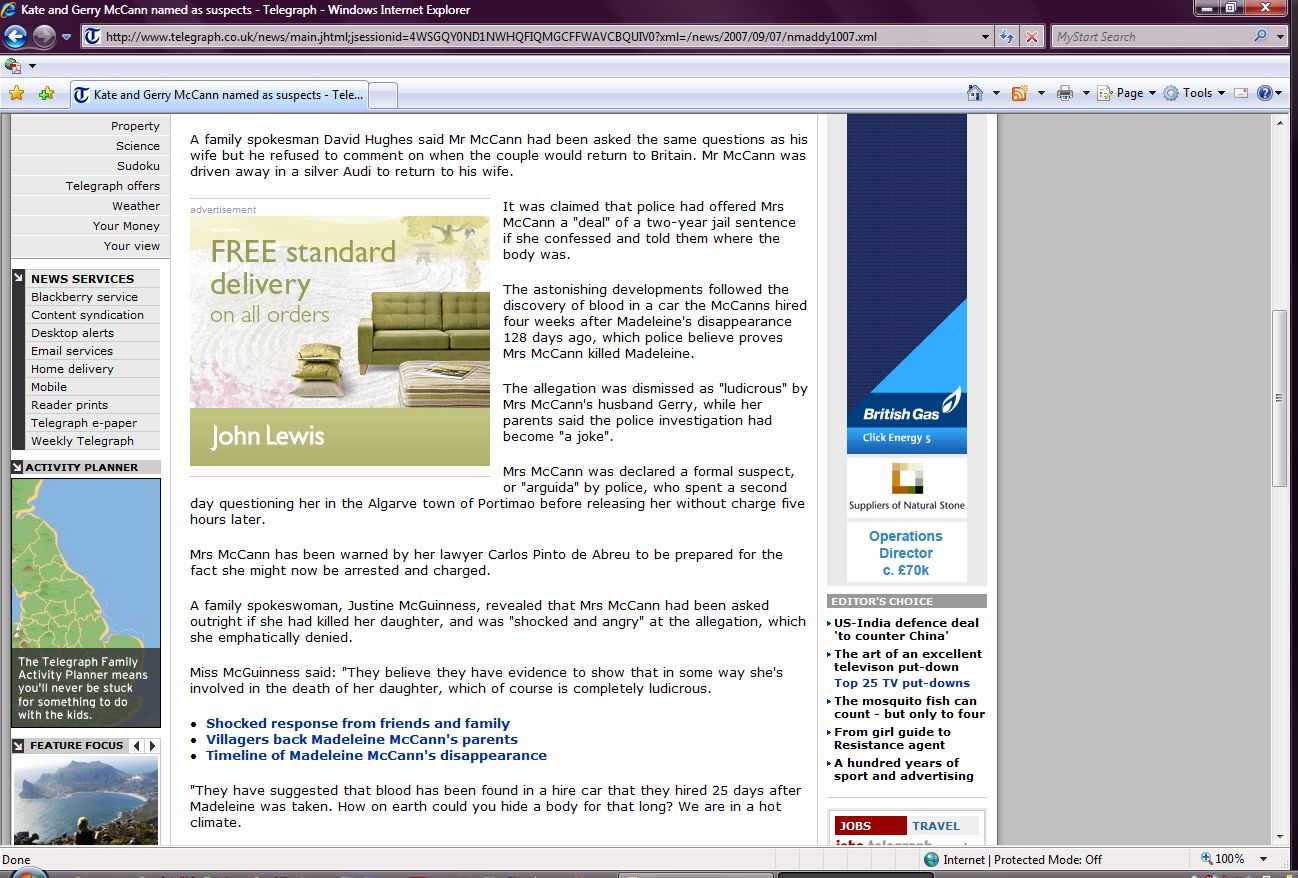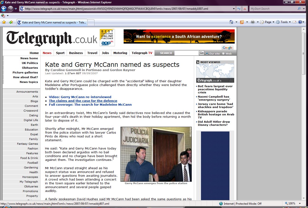 his blog on the Madeleine campaign