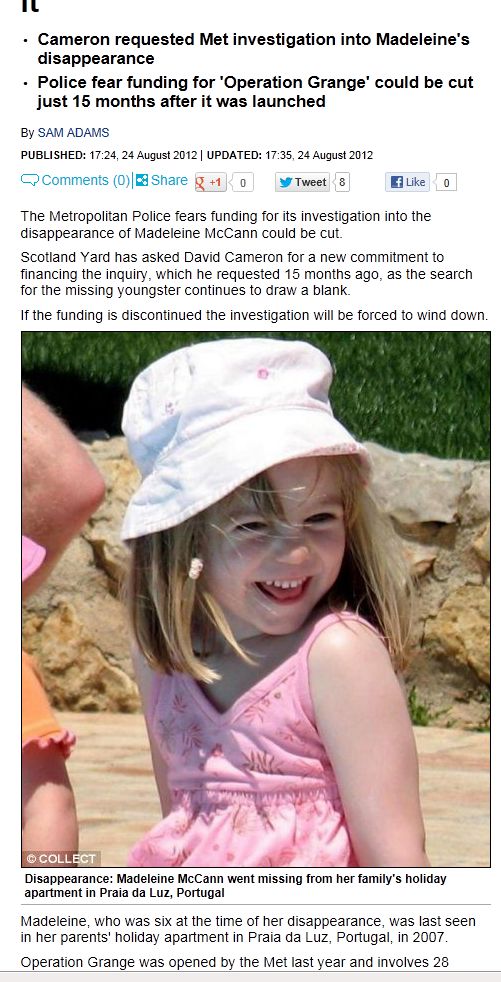 the disappearance of Madeleine McCann could be cut.
