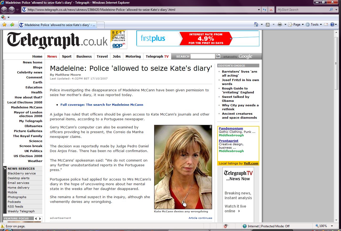 Portuguese police had applied for access to Mrs McCann's diary