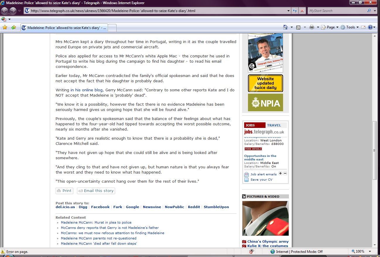 access to Kate McCann's journals and other personal items,