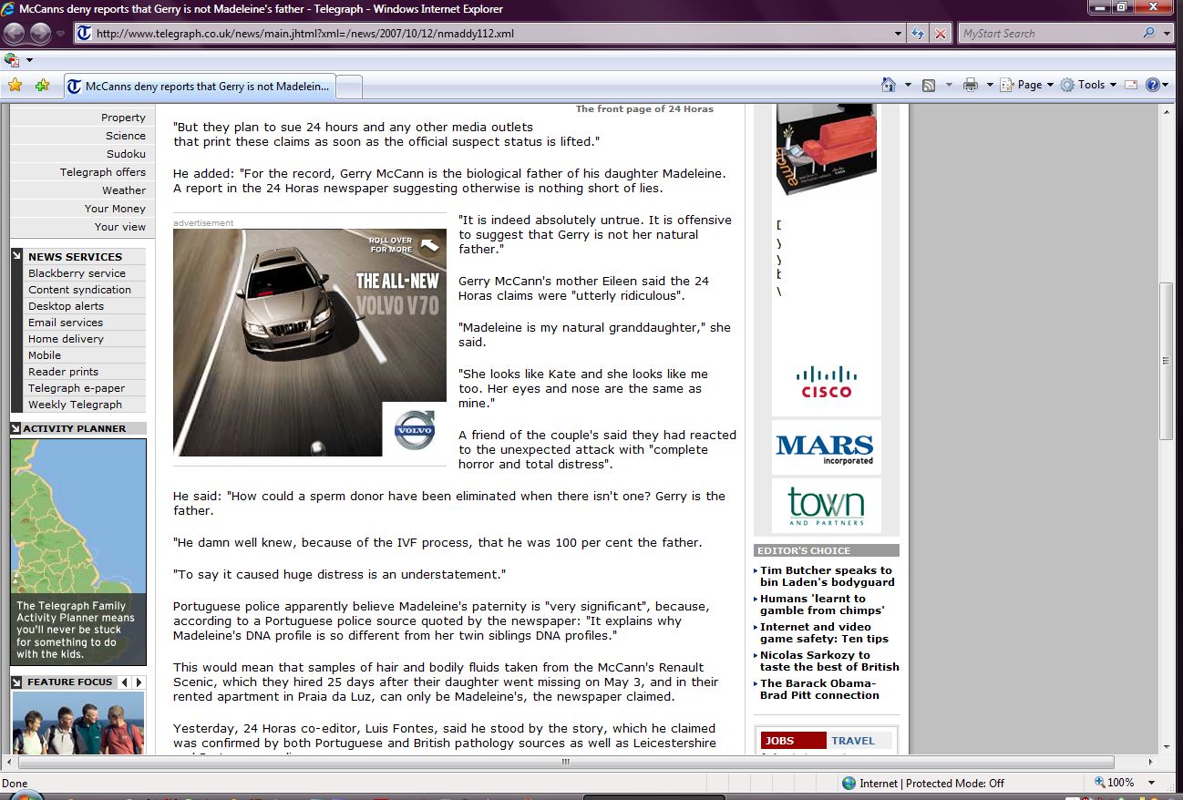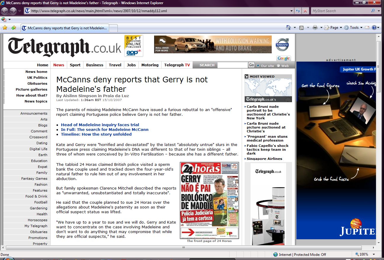 He added: "For the record, Gerry McCann is the biological father of his daughter Madeleine. A report in the 24 Horas newspaper suggesting otherwise is nothing short of lies.