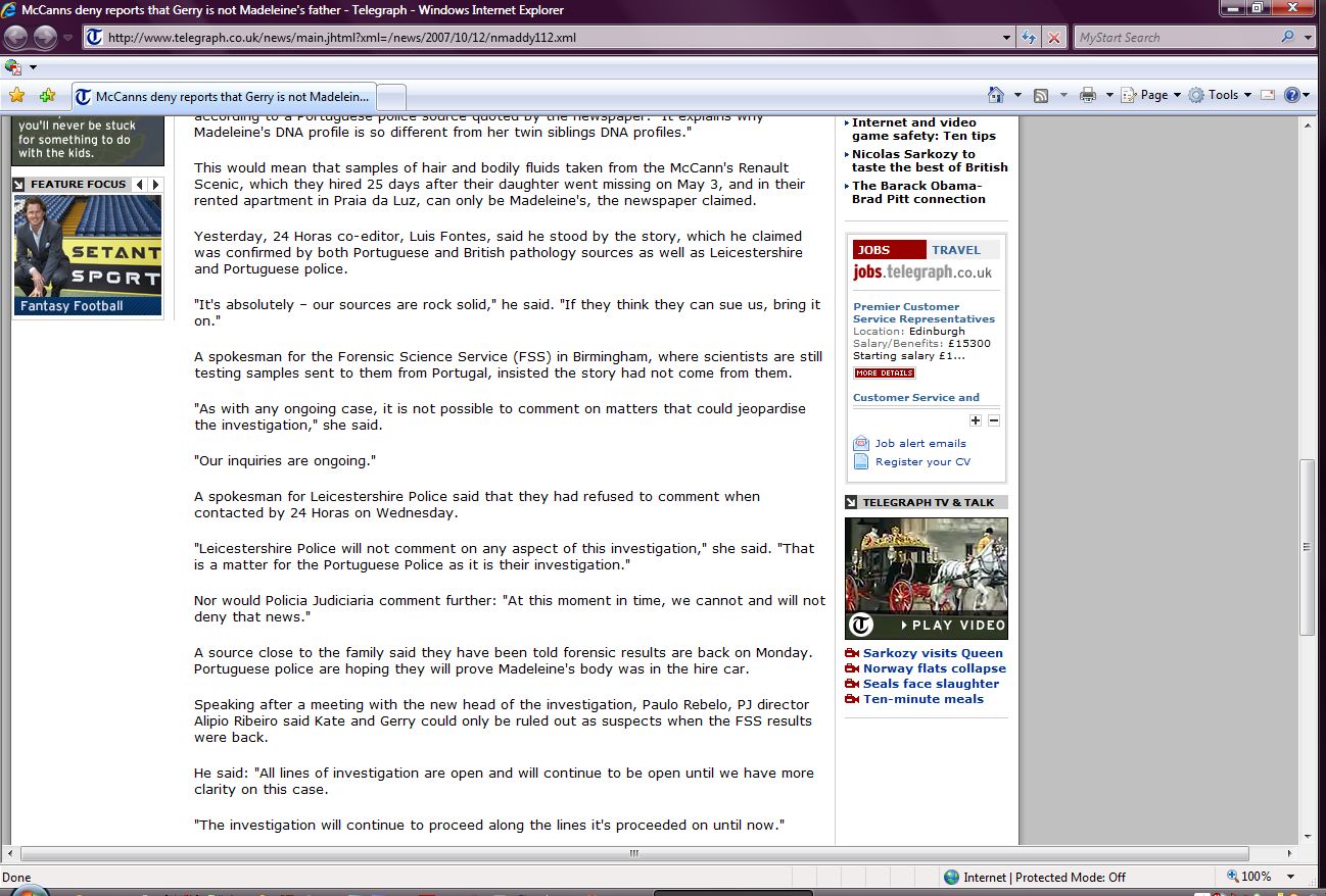 Yesterday, 24 Horas co-editor, Luis Fontes, said he stood by the story, which he claimed was confirmed by both Portuguese and British pathology sources as well as Leicestershire and Portuguese police.